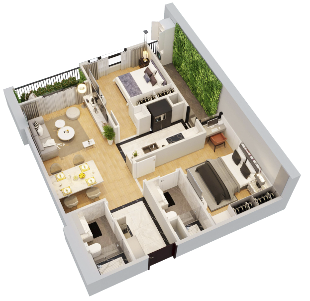 Với các loại diện tích đa dạng từ 74m2 – 123,8m2, DUY NHẤT tại Harmony Square, 100% căn hộ đều được thiết kế 2 logia, và 100% phòng ngủ đều có cửa sổ đón ánh sáng thiên nhiên từ bên ngoài, để mỗi căn hộ là một không gian sống tuyệt vời.